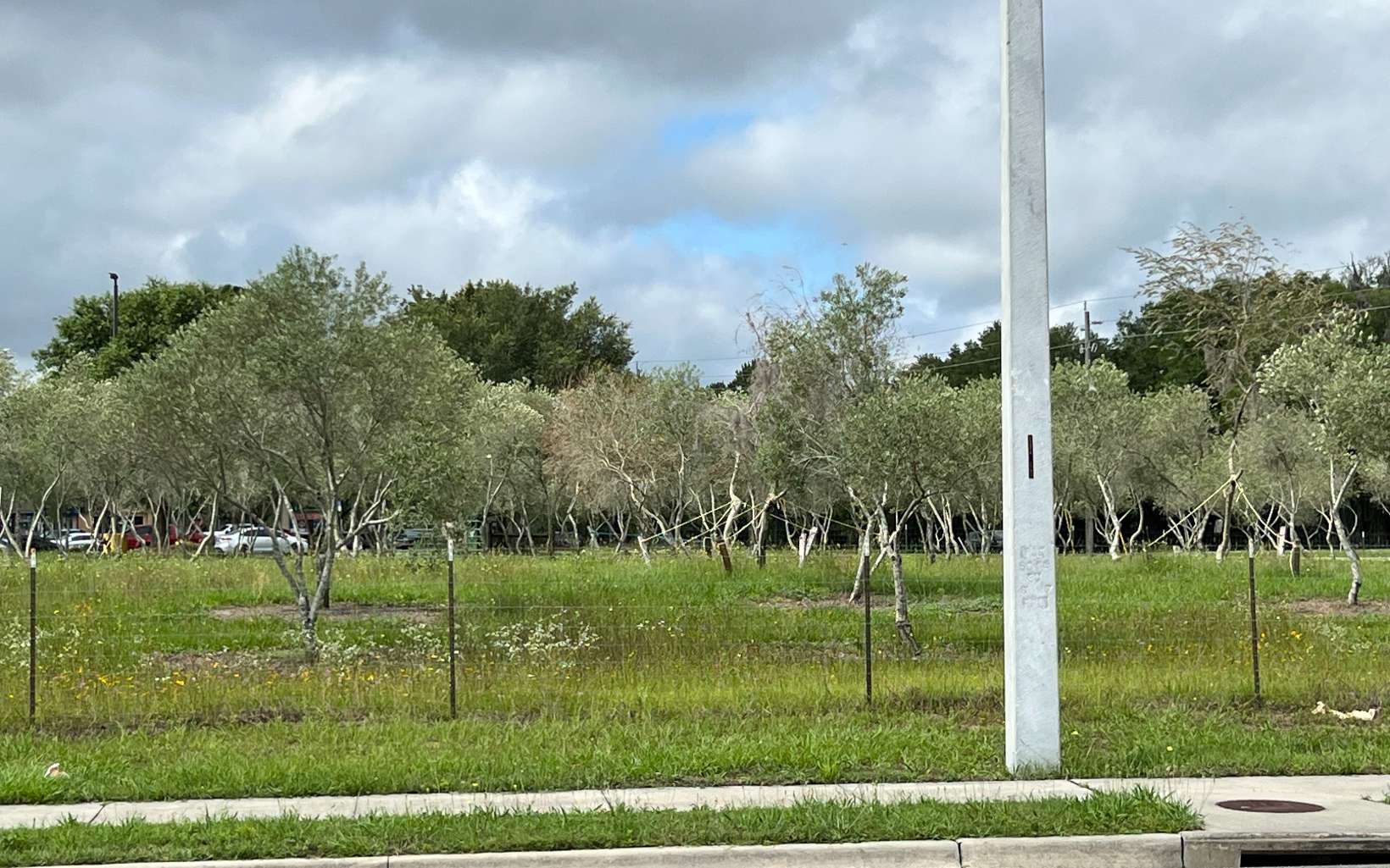 Super visibility just west of I-75/US-90! Property attached to master retention; fire hydrant abuts west boundary of property; 2 entrances available into shopping plaza parking lot; great area for development; current use is olive grove.