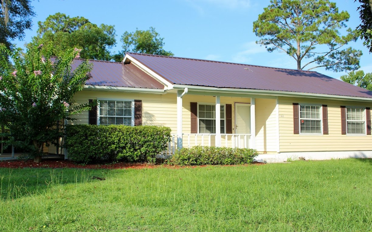 Location is everything! This 4 bedroom 2 bath home is located in the city of Live Oak and close to schools, shopping, banking, doctors. Home boasts a 17' x 23' family room with built in bookshelves and cabinets, a 10' x 26' screened back porch, large eat in kitchen, ceramic tile flooring except carpet in bedrooms, open front porch, privacy fencing back & side yard, 16' x 24' storage building, 21' x 18' carport, 18' x 30' concrete driveway, metal roof in 2022, new AC unit in 2020.