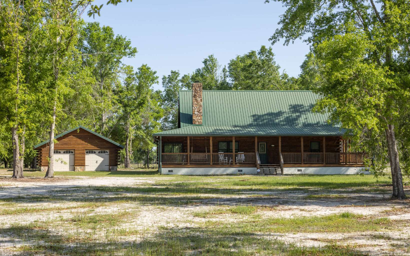 One-of-a-kind custom built Log Home on 5 Acres with paved road frontage. Over 3,700sqft under roof. Awesome location for a get-away home, close to State owned equestrian trails and Madison Blue Spring voted America's best swimming hole, ask for a full list of recreational opportunities nearby. This home has attention to detail at every corner - it has an 8ft full wrap around porch, high cathedral ceilings, a master suite loft with additional office/sitting area space, huge flagstone wood burning fireplace and chimney. Exposed log beams everywhere, high end light fixtures and ceiling fans, full walk-in tiled shower, tile and wood floors, LG stainless appliances in kitchen, granite countertop. A great sun/Florida room off of the kitchen and dining area. Beautiful private setting near the cul-de-sac of a very small neighborhood with paved private road. If all that was not enough, it also has a detached 2 car garage that's also made of logs to match the home! Spacious 5 acres, seller recently removed many trees. This could be a great horse and equestrian property. Grass is planted. Drone fly-over available upon request. Prequalified buyers for all showings, please.