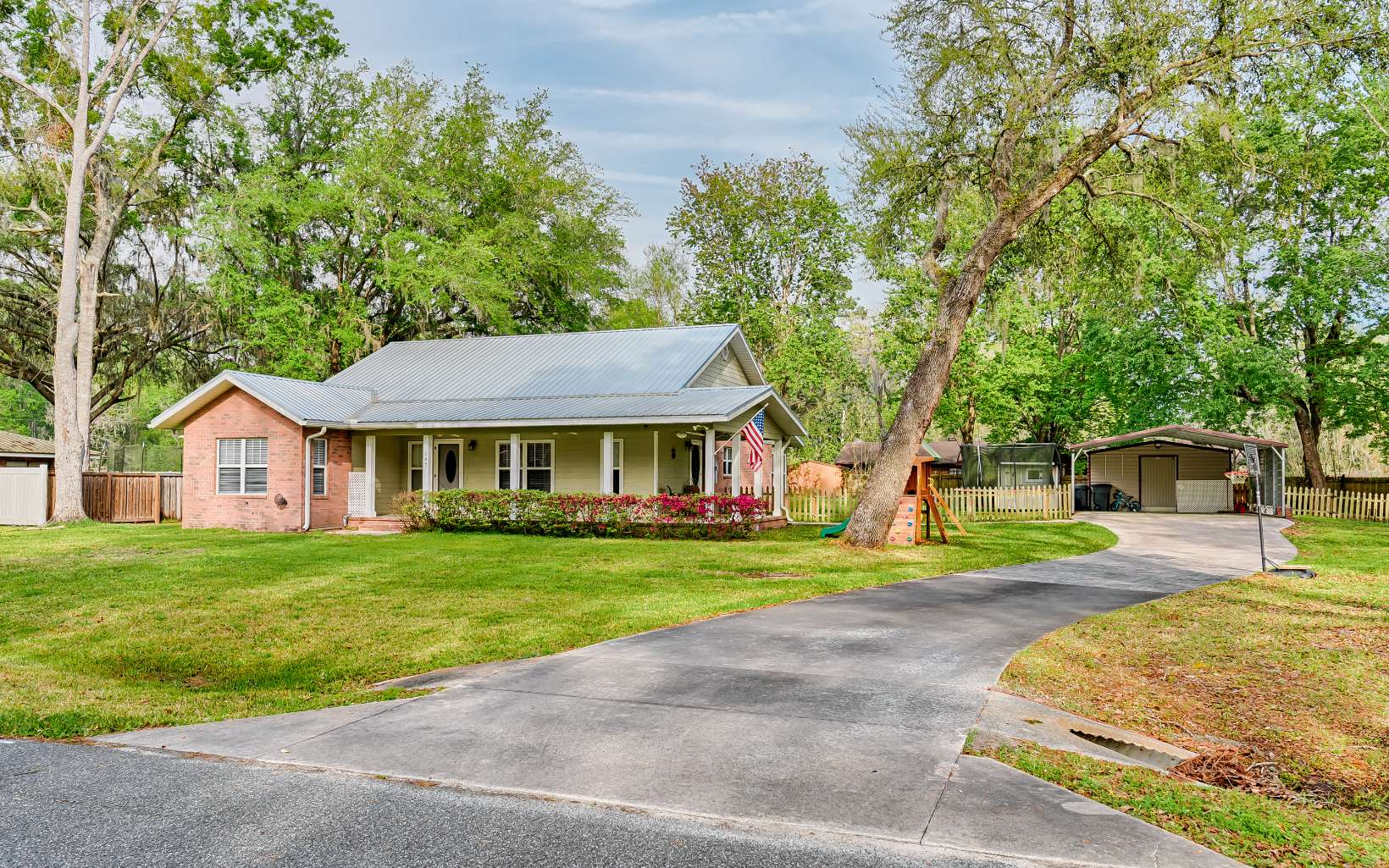 This southern living style home in the heart of North Florida features a large .40 acre lot and a wrap-around front porch in the back of the quiet neighborhood. The home features real hardwood floors throughout the main living areas, a sunroom off the back of the home and a fenced in backyard. The metal roof was installed in 2021!. The bedrooms all have brand new carpet. The master bedroom features a walk-in closet, a walk-in shower and a garden tub. The living room has an open concept and flows into the kitchen and dining room areas. The laundry room is off of the kitchen and can also be used as a mudroom. Centrally located and only a short drive into town. Come experience the charm of North Florida and enjoy the nearby springs, rivers, state parks and fishing and boating.