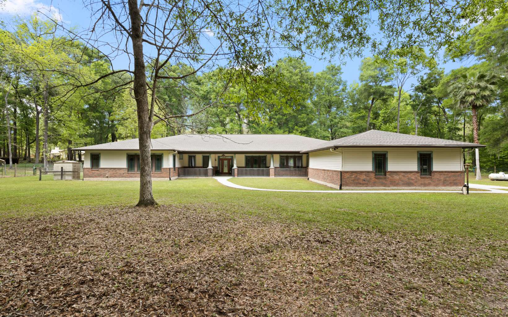 Custom built concrete block pool home + in-law suite built by O'niel construction on a beautiful and private 10 acres in the heart of North Florida. Brand new roof and hot water heater in 2024. The main home features 4,254 sq. ft. 3BR/2BA/2HB+large office or 4th bedroom. There is also an additional room off of the master bedroom that could be used as another office, craft room, nursery etc. The master bedroom features two walk-in closets and the master bathroom features double sinks, a walk-in shower and a jetted tub. The master bedroom leads out to the pool area. The second bedroom features another full bathroom and also has access to the pool area. There is a half bath in the hallway. The third bedroom and office are closer to the living area. There is a formal dining room, walkthrough pantry and a breakfast area in the kitchen. The large kitchen features real wood cabinets has an island with range in the middle. The kitchen opens up to the living room area. Also off of the kitchen is an additional large flex/utility room with another half bathroom with an exterior door. Off of this room is the two car garage. The in-law suite is detached and is 380 sq.ft. There is a small living room, a kitchenette, a full bathroom with a stand-up shower and a bedroom with a closet. Off of the in-law is the large workshop, also where the well and water softener, ozone water treatment and iron removal system is. There is a whole-house generator connected to the homes