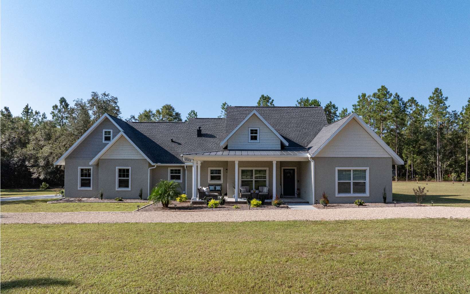 Get ready to fall in love with this stunning custom-built home nestled on nearly 10 acres in Live Oak. Constructed with enduring concrete block exterior walls and a timeless stucco finish, the home exudes durability and charm. Inside, lofty 9-foot ceilings complement three bedrooms plus a downstairs office, with a generously-sized bonus room upstairs. Enjoy the outdoors on the expansive front and back porches, surrounded by lush landscaping and a wide variety of fruit trees dotting the yard. Conveniently located just a short drive from downtown, the property also boasts an RV hookup for guests. Furniture negotiable!