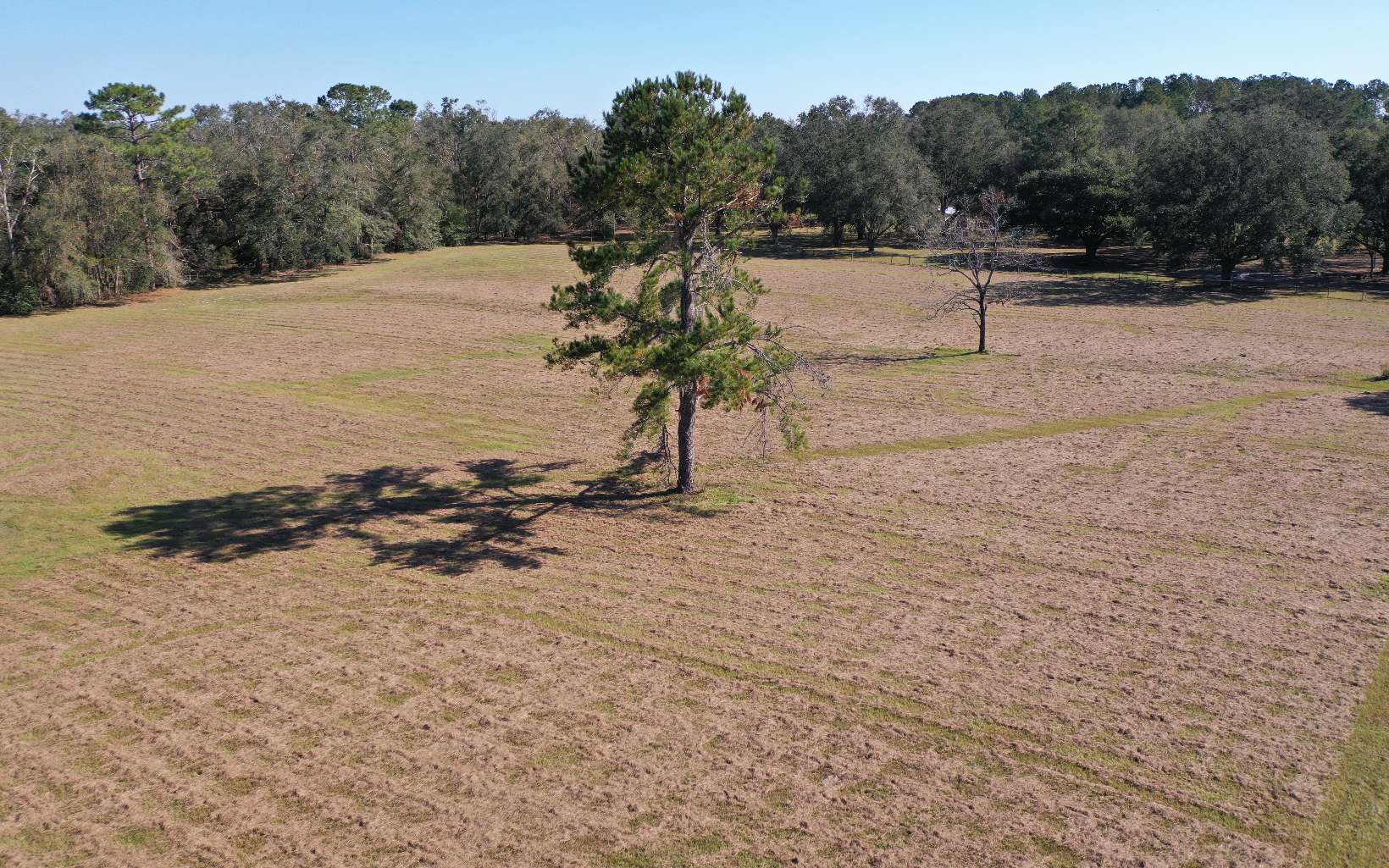Enclosed within a fence, this property spans approximately 5 acres and features a barn equipped with two horse stalls and a tack room. Utilities, including electricity and water, are available at the barn. The pasture is situated in the equestrian community of Live Oak Acres, which boasts a large population of equestrian enthusiasts. Riding horses throughout the subdivision is a daily occurrence . This 5-acre parcel is being subdivided from a larger parent parcel of 13.74 acres, and the sellers possess a survey delineating the boundaries of the 5 acres.