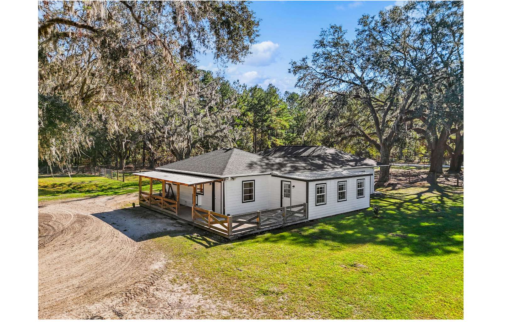 ACCEPTING BACK-UP OFFERS, KICK OUT CLAUSE IN PLACE. Welcome to your homesteading dream, offering the perfect blend of country living and modern comfort. This property is fully fenced and cross-fenced with a large 36’x36’ barn providing a truly move-in ready home for you and your animals. Surrounded by privacy fencing and a durable concrete deck, the spacious 16’x32’ inground pool reaches 8 feet deep, offering plenty of room for both relaxing and diving. Near the pool is a large concrete pad and a gazebo that would be ideal for entertaining or adding more to your compound! Bring your fishing pole and enjoy your own fully stocked pond on the property, and a second pond for your animals. Part of this 4-bedroom, 3-bathroom home includes a private mother-in-law suite, which is great for extended family, guests, or, as it’s currently used, a home office and storage space. The mother-in-law suite has 3 rooms and a full bathroom giving you flexibility and room for creativity. The charming kitchen features live edge countertops, beautiful tongue-and-groove walls, and pantry. Many updates have been made recently including a brand-new roof, paint in and out, flooring, fencing, and more! You will often find wildlife roaming around as you enjoy the view from either porch or even the comfortable Florida room! Whether you're looking for a peaceful country retreat or a functional space for your animals, this property offers everything you need and more.