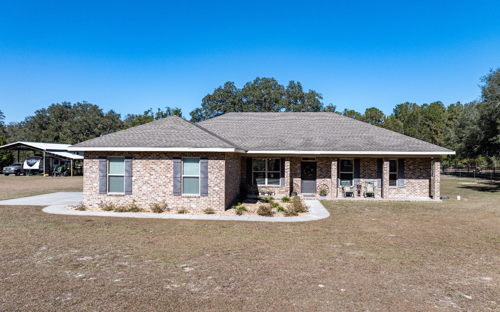 This beautifuly crafted 3 bedroom, 2 bath solid brick home sits on 5 peaceful acres, offering privacy and a touch of country charm. Custom built and lovingly maintained by its original owners, this property is a rare find! Solid brick construction, built to last with timeless appeal. Spacious layout with tons of storage! The list of features include, solid wood custom cabinets, masonry fireplace, ceramic wood plank tile, master bath shower is handicap accessible with full length wide bench, oversized closets in bedrooms, stainless steel smart appliances, commercial plumbing, and the list goes on. Additional feature sheet for home is available. Over 3000sqft under roof. Expansive property: 5 acres of open space and natural beauty. Perfect for your farm, garden and future expansion. Arrive home to your gated entry, fully fenced, 2 large pole barns, one has 50amp camper plug in and 3 cow/horse stalls, commercial wash rack for livestock, rocked flower beds, underground power with personal transformer, and more! This property is in an ideal location, situated in the serene community of Ft. White , close to local springs, rivers, and outdoor recreation while maintaining convenient access to Gainesville and Lake City. Columbia County taxes! Whether you're looking for your forever home or a peaceful retreat, this property is a must see. Schedule your showing today and experience the charm and quality for yourself.