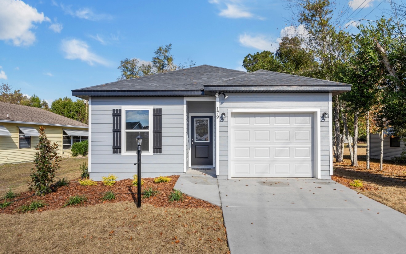 Visit this exquisite newly constructed home in Eastside Village. The meticulous attention to detail in this contemporary three-bedroom, two-bathroom split-floor plan, open-concept home is truly captivating. The spacious bedrooms feature a walk-in shower in the master suite. This home will not remain available for long in this highly sought-after 55+ retirement community.