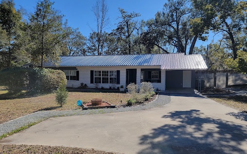 Superior location, modern updates, beautiful outdoor spaces are just a few of the thoughts that describe this beautiful home. The location is just across 129S from an elementary school, the library, and within walking distance to amenities close by. Enjoy the beautiful backyard that features a very nice above ground pool, cool firepit, custom landscaping, and shaded gazebo area. The home has a well thought out floor plan, amazing tile work that screams old Florida art deco style, modern vinyl planking flooring through out, updated modern kitchen, brand new metal roof(12/24), and large laundry room. Live in the city limits with all its benefits, but also enjoy the privacy and features of the backyard. On hot days, jump in the pool and enjoy the custom deck around it. The backyard is fenced for pets and kiddos. There is also a new metal building for storage. This is a great family home!