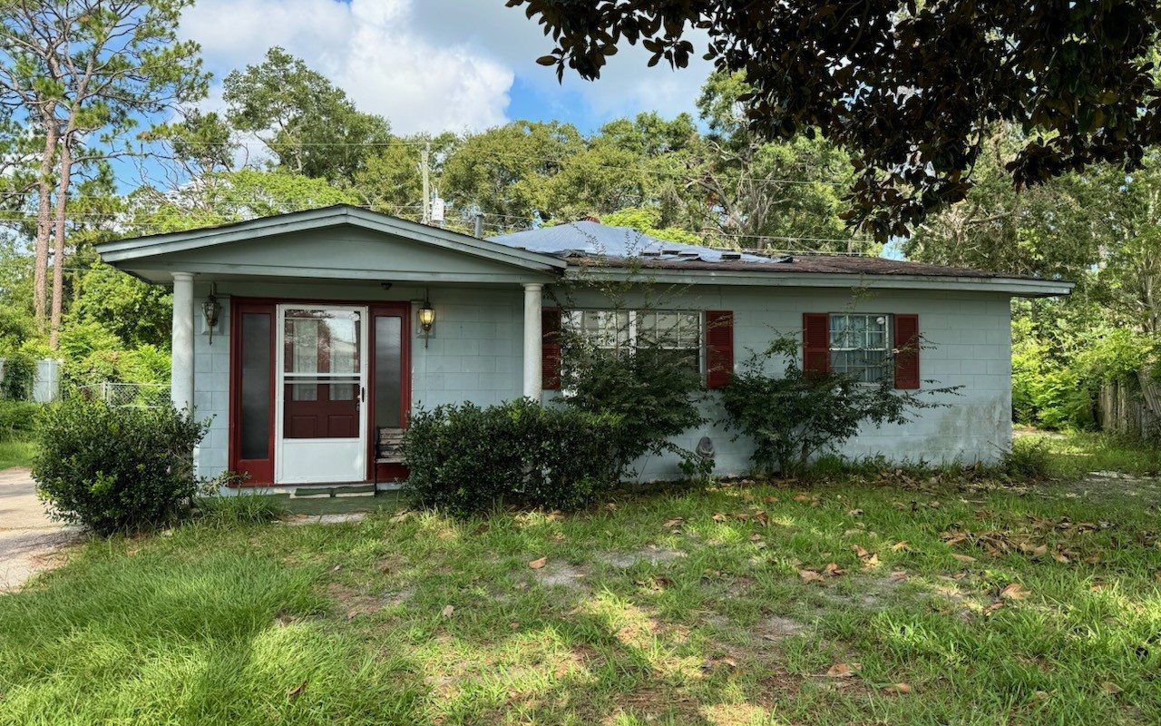 Concrete block home, in a great location, with a lot of potential. This home has so much room and space for a family and it sits on 3 lots. The backyard is surrounded by a chain link fence. The home has a large family room, a Florida room, and a screen room. Renovations can be made in order to turn this spacious house into your dream home. It has a 416 sq ft Guest Quarters in back yard, with a kitchenette and bathroom. Home needs roof repairs and HVAC. Home being sold "As-Is".