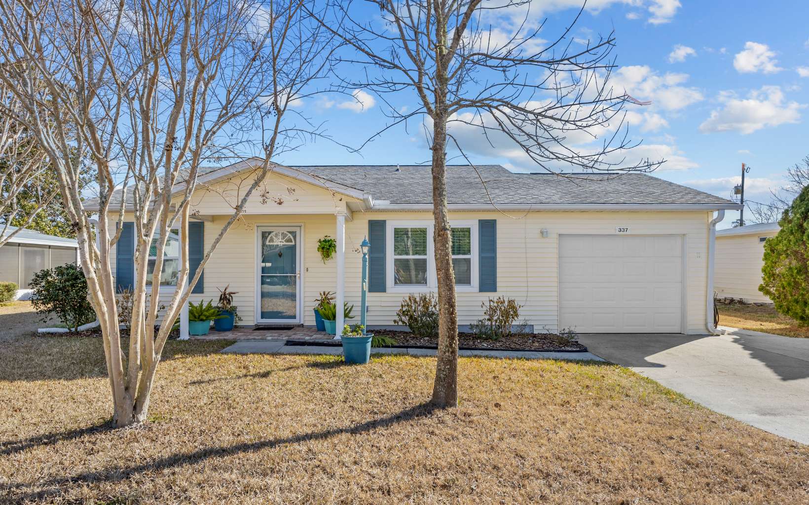 Step into this beautiful home that looks like it’s straight from the pages of Southern Living! Located in the sought-after 55+ community of Eastside Village, this home has been impeccably maintained and thoughtfully upgraded over the years. Fresh interior paint, stylish vinyl flooring, and hard surface kitchen countertops complement the freshly painted cabinetry, creating a warm and inviting atmosphere. The home offers a spacious family room, two bedrooms, and two full bathrooms, along with a bright and airy eat-in kitchen. An amazing Florida Room provides the perfect spot to relax and enjoy the peaceful surroundings, while a versatile flex room offers additional space—ideal for a home office, hobby room, or extra living area. Enjoy all the wonderful amenities that Eastside Village has to offer, including a community pool, clubhouse, and a welcoming neighborhood atmosphere. This move-in-ready home is a rare find!