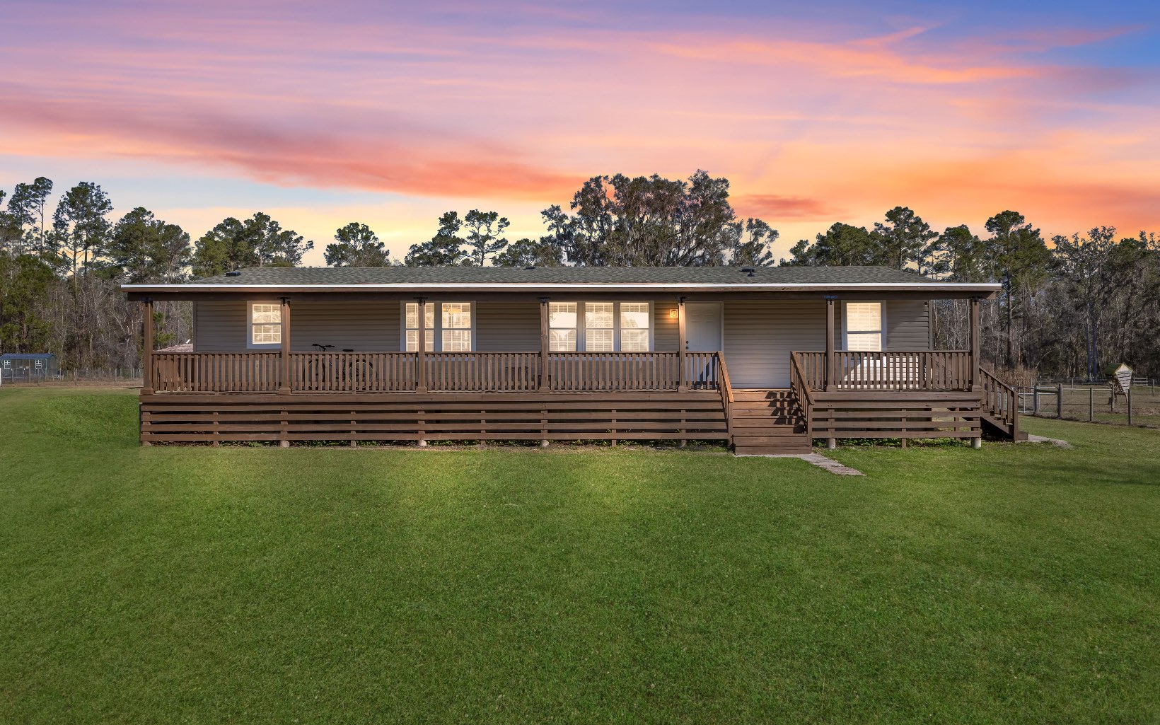 This well-maintained 3-bedroom, 2-bath home is situated on 5 fully fenced and cross-fenced acres in the desirable equestrian community of Hidden Hammocks Estates, conveniently located between Lake City and Live Oak for an easy commute. The property is located in a no flood zone and offers beautiful scenic views of the surrounding landscape. The peaceful, well-kept community provides the perfect setting to enjoy breathtaking sunrises and sunsets from the comfort of the home’s oversized porch. Inside, the home features an open floor plan that flows seamlessly from room to room. The kitchen is a standout space, boasting a huge island, a built-in wine cooler, and a large double fridge—ideal for both entertaining and everyday living. Additional features include a spacious living room, a family room, and large closets in every bedroom. A brand-new roof, 2021 HVAC, and fresh interior paint enhance the move-in-ready appeal of the home. Additional property highlights include a 40x18 barn with a 9-foot door, perfect for tractors or vehicle storage, a separate chicken coop, a goat house, and a large bird aviary. The land also includes peach trees, a lemon tree, and grapevines. This property is fully equipped for those looking to enjoy a mini-farm lifestyle in a picturesque equestrian community. A rare opportunity to own a spacious home with acreage in a prime location.