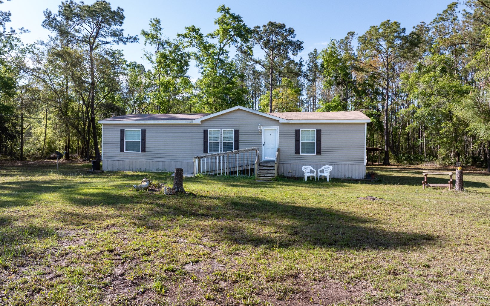 From traffic circle in Live Oak, exit onto 11th St SW, in 0.5 miles turn right onto Ohio Ave S. Continue for 3 miles and turn left onto 112th St, then in 2 miles turn right onto CR-49. In 5.9 miles turn right onto 150th St and home will be on left in 1.3 miles.