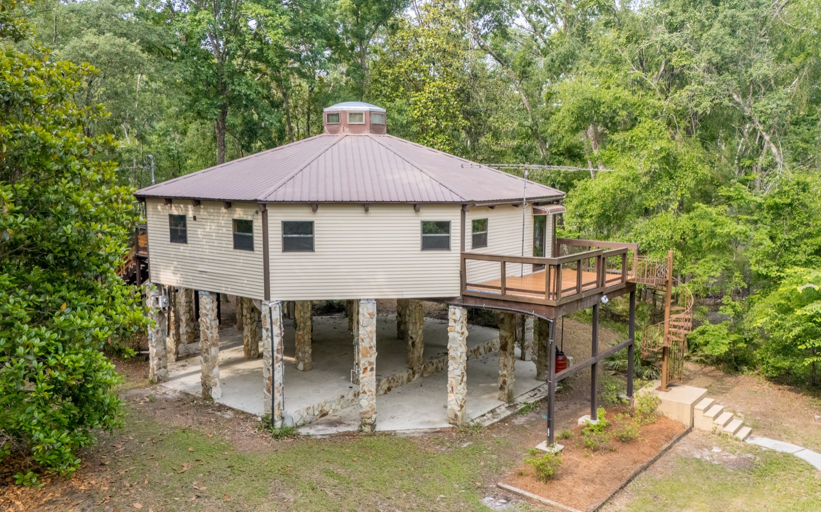 Suwannee Riverfront Home on 4.64 acres | Jasper, FL | Unmatched Views & Privacy! If you’ve been dreaming of owning a riverfront home on the Suwannee River, here’s your chance! Located in peaceful Jasper, Florida, this one-of-a-kind 3-bedroom, 2-bath retreat was built in 1990—before today’s setback restrictions—giving you rare, up-close river frontage and incredible views right from your back deck. The unique octagon design of the home blends beautifully with its wooded, private acreage, and the massive windows flood the space with natural light and panoramic river views. Inside, you’ll fall in love with the gorgeous wood ceilings that bring warmth and character to every room. The kitchen is finished with granite countertops and flows into open living and dining areas—perfect for entertaining or just enjoying the tranquil setting. There’s also office space, making it easy to work from home. Acreage consists of two lots- so another home can be added! Whether you’re looking for a full-time residence, a weekend getaway, or a vacation rental on the Suwannee, this property checks all the boxes: privacy, charm, river access, and unbeatable views.