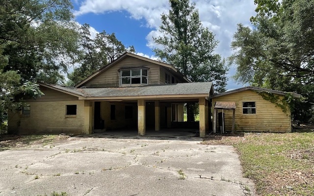 Brick home on 5 acres just south of Lake City, FL offers a solid foundation to work on with great potential. The downstairs is a renovated shell allowing for custom finishing. The upstairs includes one full bedroom and bathroom that need aesthetic work. Additional features include carport and a bonus room that opens out to the pool area. Great potential with vision.