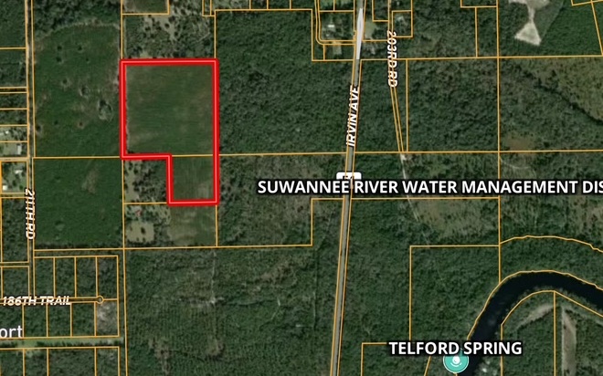 50 acres of 10-year-old planted slash pines joining STATE LANDS. Trees have been maintained to harvest straw and are ready for harvest. Property is a couple of miles to major springs, boat landing and Suwannee River and is very private. Lot of deer & turkey in this area. Electricity & fiber optics available.