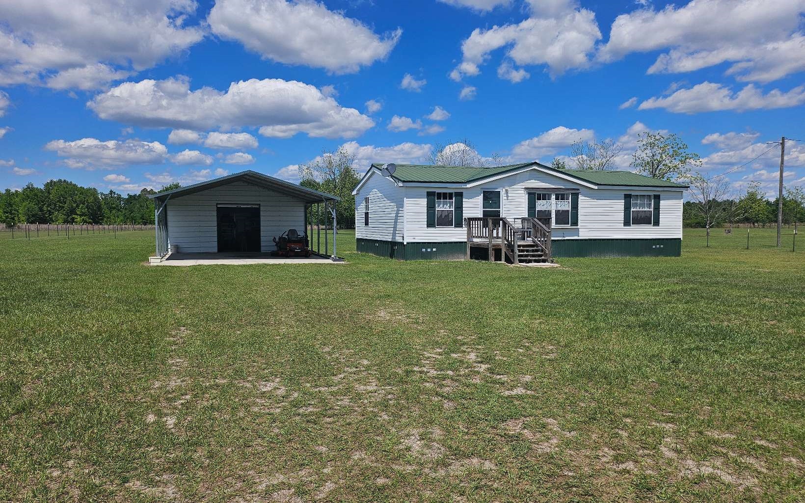 Peaceful paradise! Great 10.19 acres with a 3 bedroom 2 bath doublewide mobile home. The property is located near the historic Suwannee River. This is a beautiful property which is been very well maintained. There is a large 2 car metal carport with storage room and two additional sheds on the property. The home is a split plan with a nice open floorplan. The master bedroom and bathroom are spacious. The home also has an indoor laundry room. Make this your dream home today!