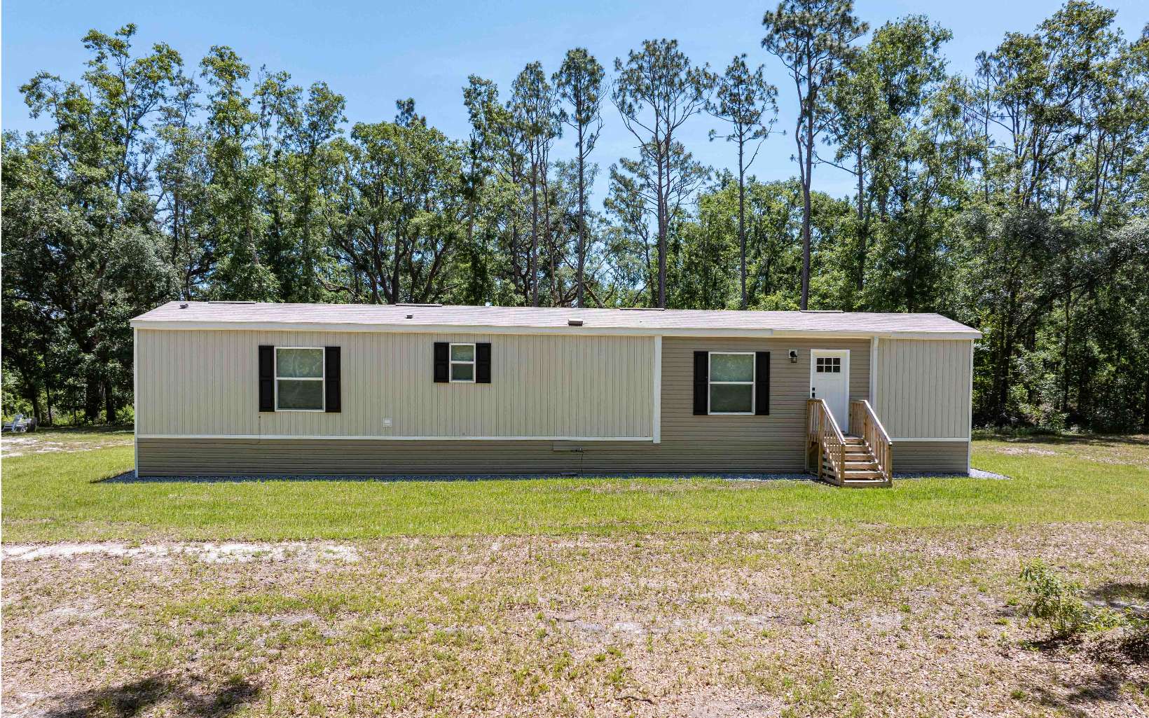 Welcome to your tranquil retreat! This charming 2023 Clayton SWMH boasts 1,020 sqft of comfortable living space, set on a square 10 acre tract. This property features numerous upgrades, including a gas stove, a sliding back door for easy access to the outdoors, a dedicated coffee bar, and gutters thoughtfully placed above the exterior doors. Step outside to enjoy the 24x24 deck, complete with 13x13 canvas gazebo—an ideal spot for your adventurous side or to host other family, friends, guests. The property is equipped with a 2-ton Trane HVAC system for year-round comfort and a 50 amp RV hookup. There’s ample space with a 40x20 outbuilding w/a 20x24 carport, wired with 110 electric and 220 for heavy equipment. The surrounding area is beautifully landscaped, featuring gravel around the skirting and sod around the home, plus one acre cleared for your enjoyment. The property is partially fenced and enhanced with trails, two gates, and majestic oak trees, offering both seclusion and accessibility. For added privacy, the southern border is planted with baby cedar trees, creating a natural hedge. Owners rave about the excellent well water and the abundance of local wildlife. This property is ideally located just a short drive from the Suwannee River and the enchanting Mystic Jungle. Additionally, it's only 45 minutes to Ichetucknee Springs and close to various smaller local springs. Don’t miss out on this unique opportunity to own a slice of paradise!