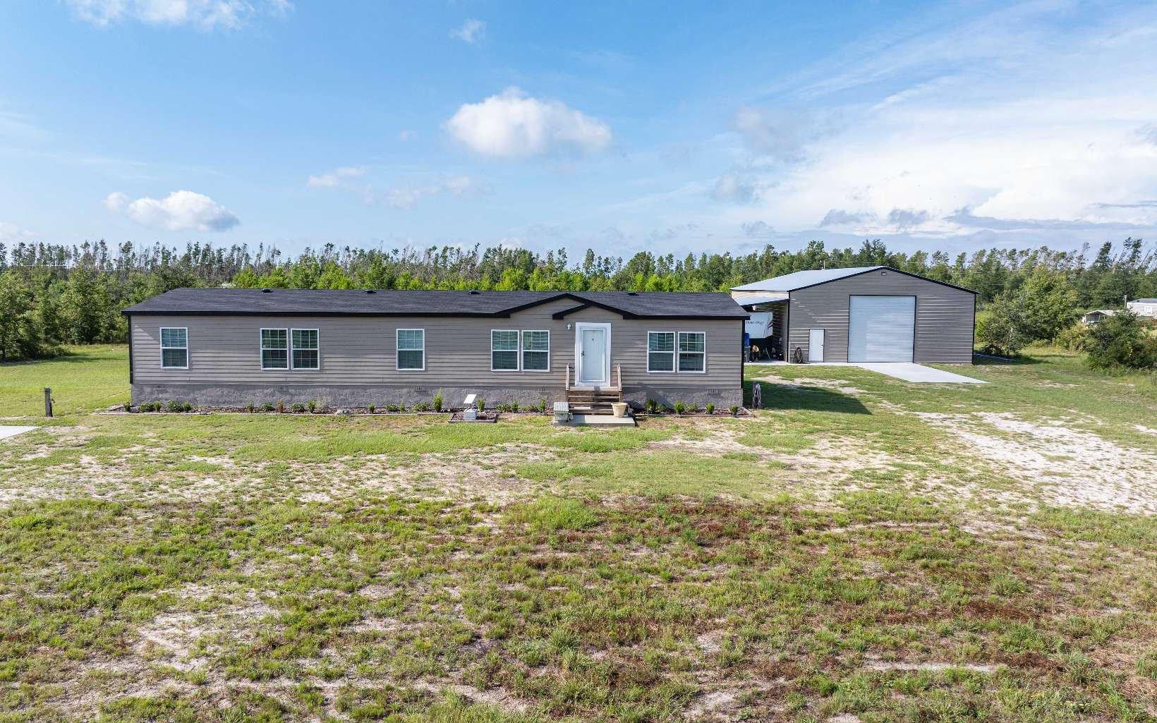 Live in this gorgeous brand-new 4 bedroom 2 bath home while you renovate the upgraded 60 x 40 steel building into your dream Barndominium. Possible multi-family living on this pristine 5 acres of Florida Paradise. This property also boasts two rentable RV pads- concrete pads with full hook-ups, giving you immediate income or pleasure use. The home itself has been upgraded with extra perimeter supports, stucco skirting, and hardee board siding, painted to match the shop. Call or Text today for more information or to see this immaculate home.