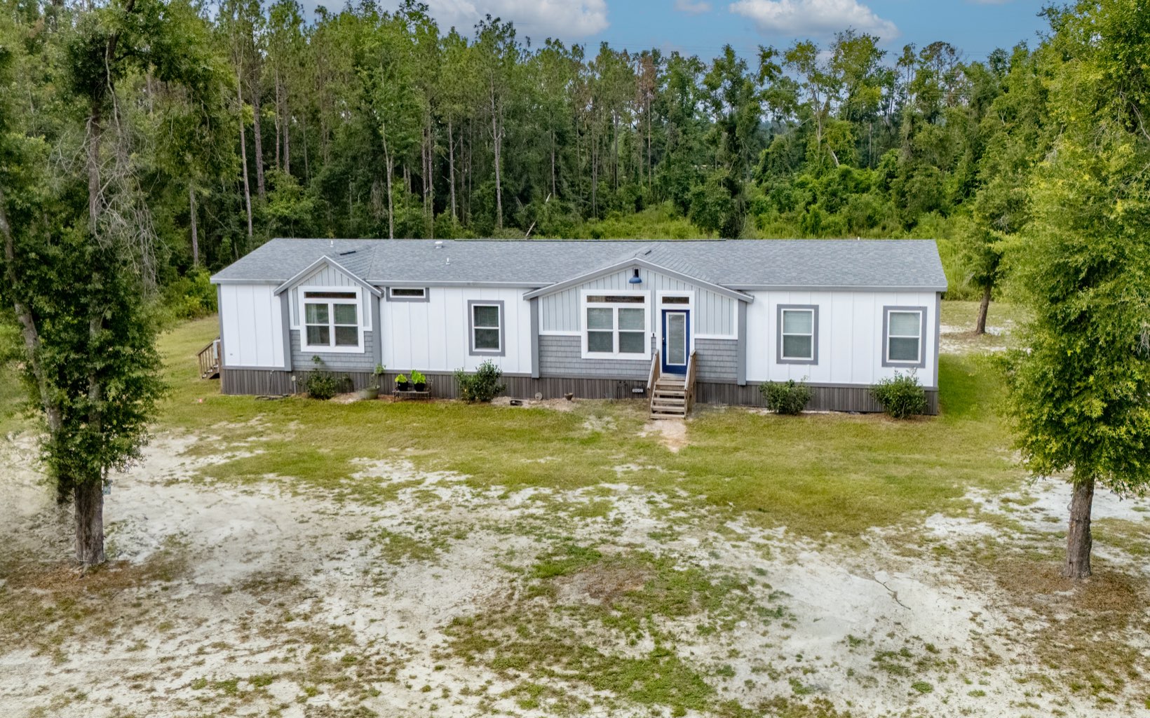 Spacious 2022 Palm Harbor Home on 6 Acres in Live Oak, FL – No Flood Zone! Discover country living at its finest in this beautifully designed 2022 Palm Harbor manufactured home, offering 3 spacious bedrooms, 2 full bathrooms, and over 2,350 square feet of living space on a gorgeous 6-acre parcel just minutes from downtown Live Oak, FL. Located on a paved road this property is perfect for those seeking peaceful rural living with modern comfort—and yes, farm animals are allowed! Step inside to find a thoughtfully planned split floorplan that includes a formal living room, a cozy family room, and a dedicated office or craft room with built-in shelving. The heart of the home is the farmhouse-style kitchen, featuring a walk-in pantry, built-in microwave, wine fridge, and ample counter space, making it ideal for entertaining or everyday living. Each bedroom offers generous space and storage, with the primary suite providing a relaxing retreat. The laundry/utility room adds function, and the home is loaded with stylish details from crown molding to high ceilings that showcase Palm Harbor's renowned craftsmanship. Whether you're dreaming of a mini farm, family compound, or simply want room to roam, this high-and-dry acreage delivers. With no HOA and room for RVs, animals, gardens, and more, this property checks every box.