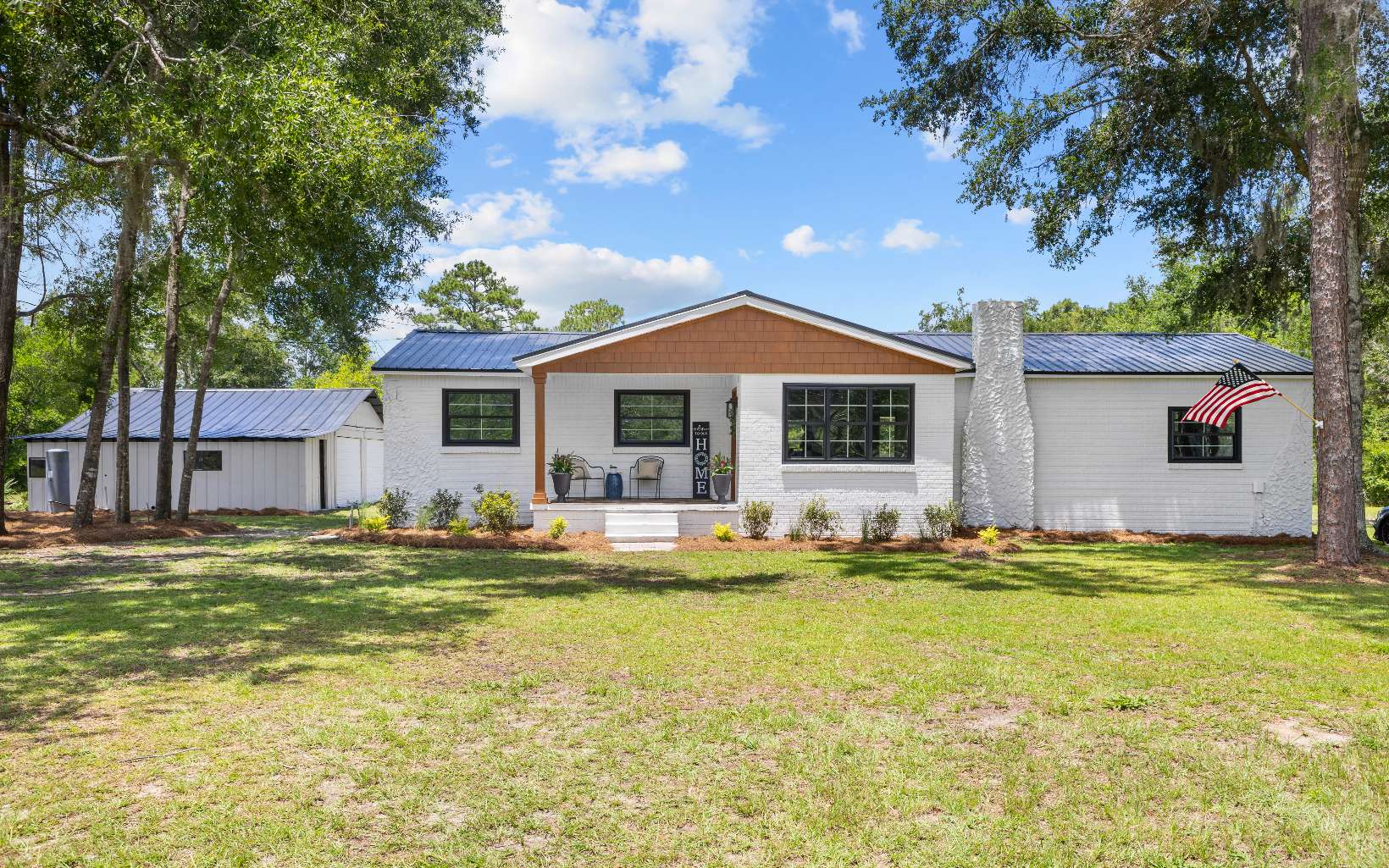 Stunning brick home boasting 3-bedrooms, 2-bathrooms with an additional office/flex room nestled on 11 serene acres. In 2025 home was beautifully remodeled with the following all NEW: metal roof, windows, appliances, LVP flooring, custom cabinets, granite counters, eat-in kitchen island, stunning herringbone tile backsplash, light fixtures, ceiling fans & so much more! Home provides a warm & modern aesthetic & the layout includes: living room, family room, dining area, master suite & a versatile flex room/office perfect for working from home or additional living space. Outside, you'll find a workshop/barn, scattered trees & plenty of space to roam, garden, set up your mini farm or just enjoy the peace and privacy. Located just minutes from the river, this is an ideal retreat for outdoor enthusiasts or those looking for quiet country living. No Deed Restrictions & NO HOA! Home is not situated in the FEMA flood zone. Don’t miss this rare opportunity—schedule your private tour today!