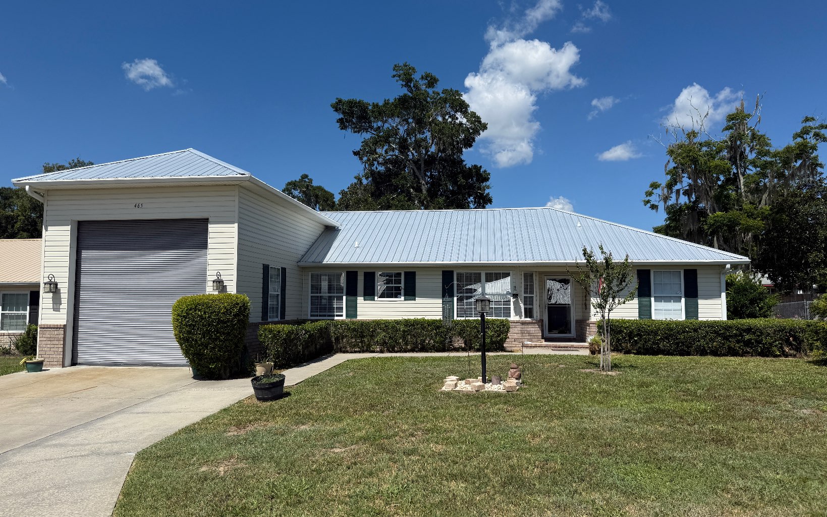 Interior photos coming soon, but don't wait to fall in love with this beautifully updated home in the highly sought-after Eastside Village, a vibrant 55+ community. Step inside and imagine the stylish upgrades, including a brand-new custom kitchen featuring crisp white cabinetry, granite countertops, a chic tiled backsplash, and gleaming stainless-steel appliances—only 4 months old! The home features a desirable split floor plan for added privacy, with both the owner's suite and guest bathroom thoughtfully updated for modern comfort. Enjoy year-round relaxation in the heated and cooled sunroom or unwind on the screened porch while taking in views of the beautifully maintained backyard. Practical upgrades abound with a whole-house generator, a water treatment system, and an impressive 72' x 17' RV garage boasting 16' ceilings and a loft for extra storage. A new metal roof was installed in October 2024.