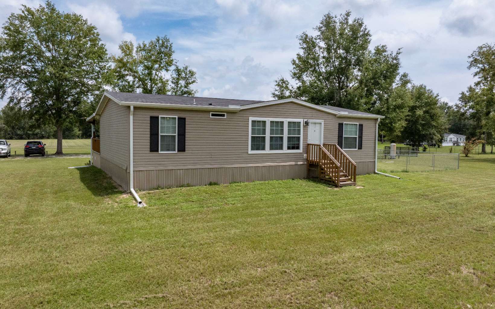 2021 Pine Manor Home on 5 Acres in Live Oak, FL – No Flood Zone! Discover country living at its finest in this beautifully designed home by Champion, offering 3 spacious bedrooms, 2 full bathrooms, and over 1,536 square feet of living space on a gorgeous 5-acre parcel just minutes from downtown Live Oak and I-10. Located on a paved road this property is perfect for those seeking peaceful rural living with modern comfort—and yes, farm animals are allowed! Step inside to find a thoughtfully planned split floorplan that includes a cozy living room, an open kitchen and dining room, large island and pantry and a two extra bedrooms for guests, a office, or craft room. The home has ample space, making it ideal for entertaining or everyday living. Each bedroom offers generous space and storage, with the primary suite providing a relaxing retreat with a beautiful soaking bath tub in the bathroom. The laundry/utility room adds function, and the home is loaded with stylish details from crown molding to tray ceiling in the living room. New water filtration system installed which includes a water softener. It is a peroxide system which purifies the water. The back porch the length of the home 14X48, three sheds (one with power & one with wiring underground) ), and RV hook up too! Whether you're dreaming of a mini farm, family compound, or simply want room to roam, this high-and-dry acreage delivers. With no HOA and room for RVs, animals, gardens, and more, this property checks every box.