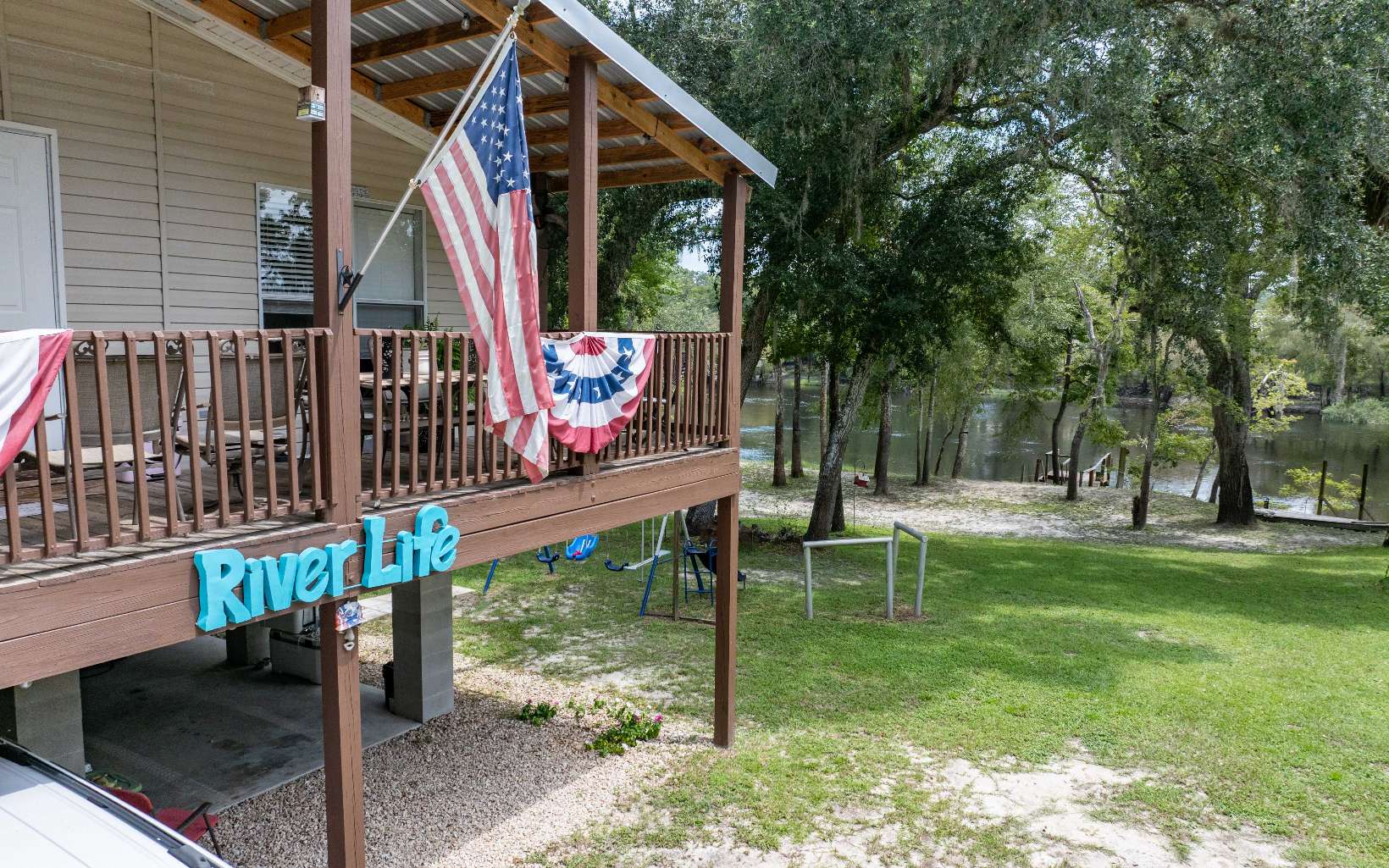 Beautiful riverfront property!! Move-in ready. Whether you're searching for your dream home or dream vacation spot this could be the perfect setup for you. This home sits on 2 acres and has 360 feet of frontage on the Suwannee River. This property features a boat dock, storage shed, and shed with a bathroom. All convenient for living on the river and enjoying the outdoors. 3 septic tanks on property. Elevator/lift for easy access into the home. Relax on the porch with an immaculate view of the river. Open kitchen with wood cabinets. Open living area with a wood burning fireplace. AC unit 2017. Come enjoy the peacefully atmosphere and abundance of wildlife this property has to offer.