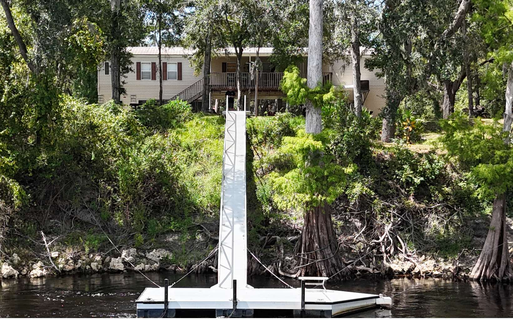 When you are looking to get away from the big city, neon and redlights, come on down to the beautiful Suwannee River! This move-in ready home is a perfect investment for vacation rental that will sleep 14 or bring the whole family. Enjoy the gorgeous river views from the large back porch of the well maintained, 3 bedrooms, 2.5 bath home. With 2 full kitchens and extra bathroom downstairs, there is plenty of space for a large family to play and enjoy time together. Plenty of parking for all your vehicles, boats, and Buggys under the house. Spacious work-shop area, new drain field 2022, Aerobic sewer system with new air compressor 2022 and new field lines. This structurally engineered home also has water filtration system and metal roof. The wooden deck will take you down to the rope swing and the new aluminum dock is ready to dock the boat in between rides. The quiet neighborhood has a private beach, and the public boat ramp is a short ride away on the next road. The small town of Mayo is 8 miles away; Live Oak is 29 miles and Lake City is 42 miles. Call today for your own private showing.