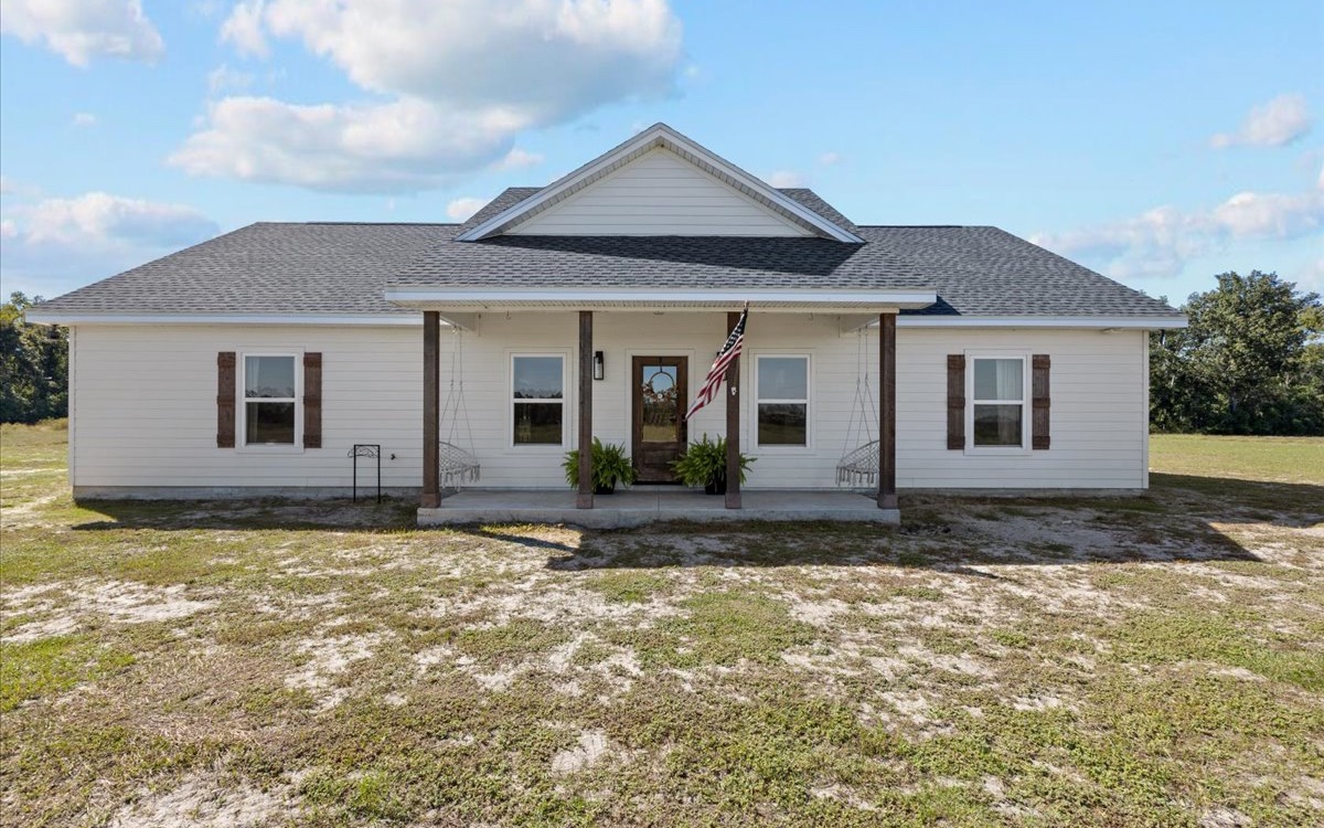 If wide open skies, fresh air, and quiet mornings sound like your kind of living, this 2023 farmhouse on 20.13 peaceful acres is the one for you. From the moment you pull down the drive, you’re greeted with nothing but panoramic farm views and the peaceful sound of birds and wind through the fields. Step inside and you’ll feel right at home. The open floor plan gives plenty of space for family gatherings or cozy nights in. The kitchen was made for the heart of the home, featuring granite countertops, a walk-in pantry, and backyard views right over the sink. You’ll be baking sourdough and watching deer in the pasture before you know it. The primary suite is tucked away for privacy, offering a large walk-in closet and a beautiful bathroom with a modern tiled shower and double vanity. On the other side of the home, you’ll find two spacious bedrooms with big closets and a second bathroom with a tub/shower combo, perfect for guests or kids. Out back, there’s a covered patio that’s just begging for morning coffee, rocking chairs, and evenings watching the sun dip behind the trees. Located in Mayo, Florida, with a top-rated school, this home gives you that simple, peaceful country lifestyle with room to roam, space to grow, and views that never get old.