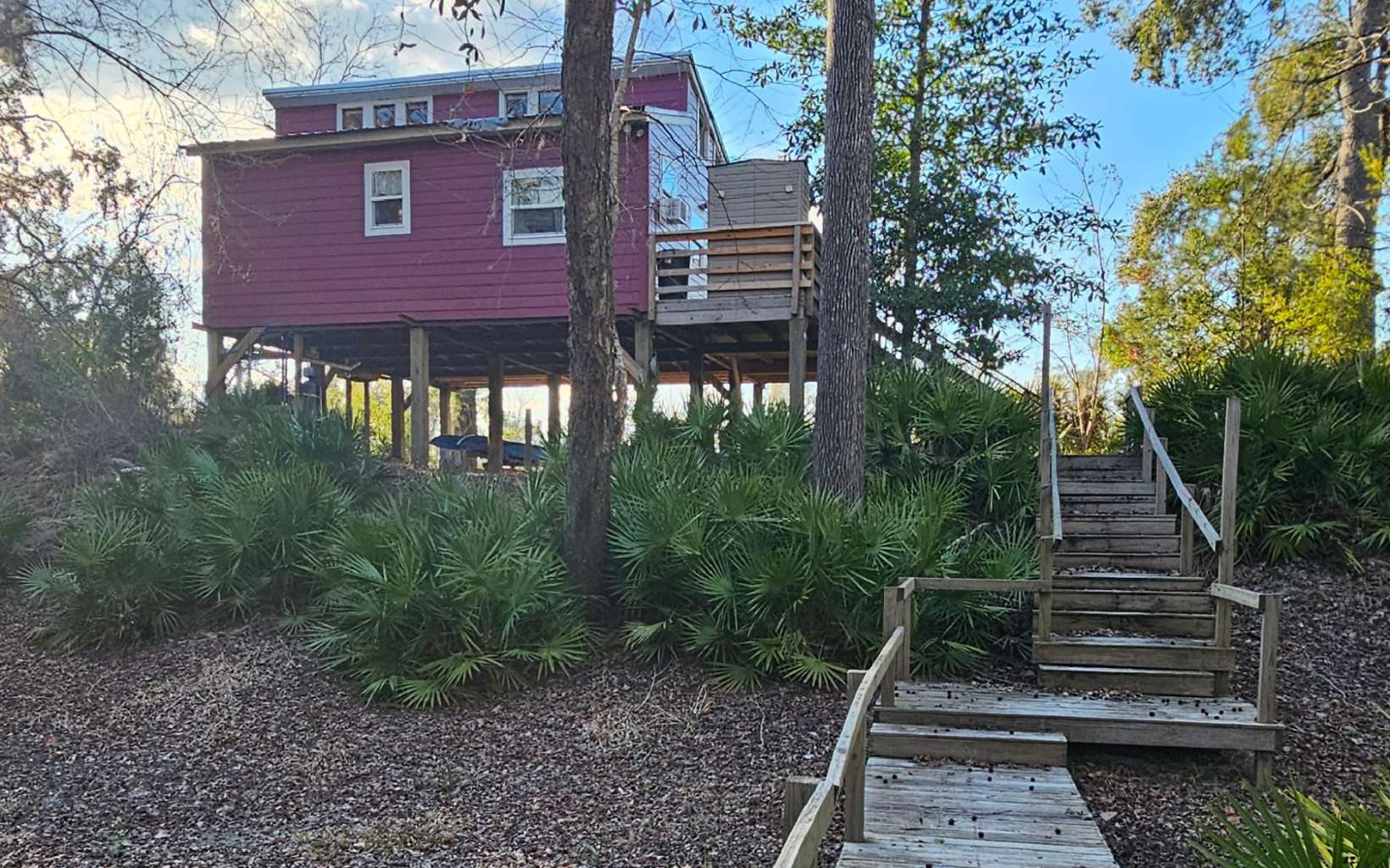 Escape to your own Suwannee River sanctuary set on two lots offering privacy, flexibility, future possibilities and classic Florida appeal. This charming 1 bedroom, 1 bath stilt home is perfectly positioned to take in river views from a spacious porch overlooking the water. Inside, a loft adds character and flexible living space, creating a cozy yet open feel. Thoughtful updates include a whole-house water filtration system and tankless water heater, offering comfort and peace of mind. Step outside to enjoy a sandy riverfront area ideal for launching kayaks, fishing, or relaxing by the water’s edge. The property features natural, low-maintenance landscaping that blends seamlessly with the surrounding environment. A storage shed and RV hookup with water and septic provides exceptional versatility for guests or additional use. Whether you’re seeking a weekend getaway, full-time river living, or an investment retreat, this special Suwannee River property captures the essence of peaceful waterfront living.