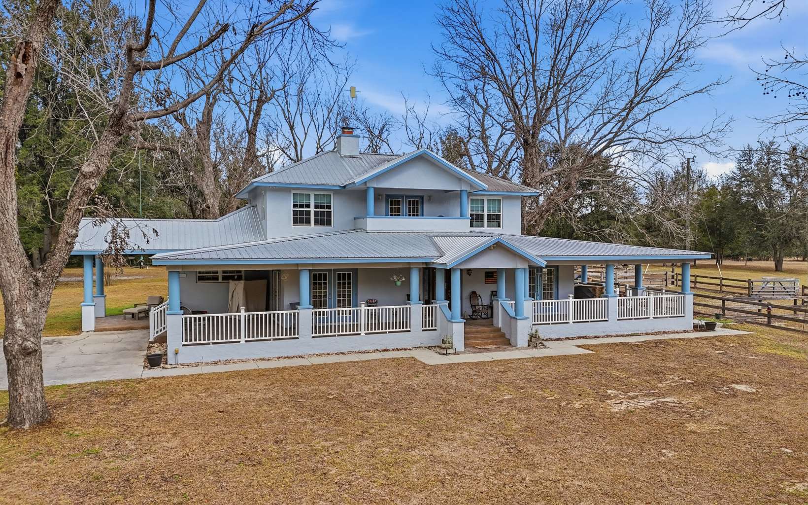 Welcome to your private retreat in the highly sought-after southern part of Lake City. Built in 2013, this custom concrete block & stucco two-story home sits on just over 14 acres of cleared, fenced & cross-fenced pasture — perfectly suited for horses, cattle, or your own mini farm. Automatic gated entrance opens to a beautifully maintained property featuring various fruit bearing species. Just minutes from many historic springs & several rivers. Inside, the home offers 4 bedrooms & 4 bathrooms with a thoughtful & flexible layout. The primary suite is located on the first floor. Upstairs you’ll find two additional bedrooms, a bathroom, a spacious living area with fireplace, & a private balcony overlooking the property. A fully ADA-accessible guest suite downstairs includes private entrance, full kitchen, fireplace, full bath and living/sitting area. Beautiful theatre room features a remote controlled projector & screen. Spray foam insulation, two tankless water heaters, and a 24-gauge metal roof add efficiency & durability. Outdoor living is exceptional with multiple covered porches, a full outdoor kitchen, concrete smoker, & fire pit overlooking the pasture. 30' flag pole with solar lighting. 400-amp RV/motorhome service, whole-house GENERAC 24k generator installed in 2024, 500 and 250 gallon propane tanks. Sprinkler system, well water with hand pump backup, starlink internet system too. Two Car Offset Garage with storage/office. Historic Barn also. A preppers paradise.
