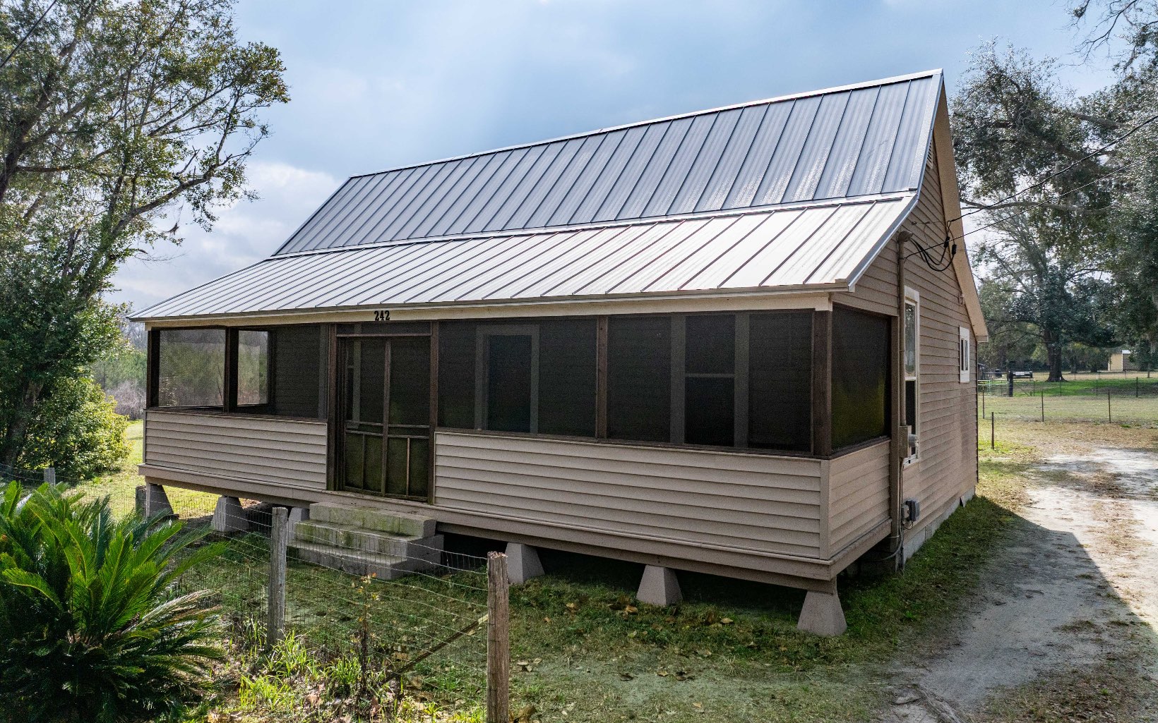 This beautifully restored early-1900s home in the heart of Pinetta, Florida blends timeless character with thoughtful modern updates while preserving many original features. Renovations include updated wiring and plumbing, vinyl siding, insulated windows, and a brand new metal roof. The kitchen offers a gas stove and existing appliances, and a tankless water heater provides continuous hot water. Inside, you’ll find high ceilings, some original wood walls, and two and a half updated bathrooms, including a walk-in shower and a Jacuzzi tub in the second bath. A large screened front porch overlooks the fenced yard, which offers plenty of space for gardening, outdoor activities, or simply enjoying the outdoors. Don’t miss your opportunity to see this inviting home!